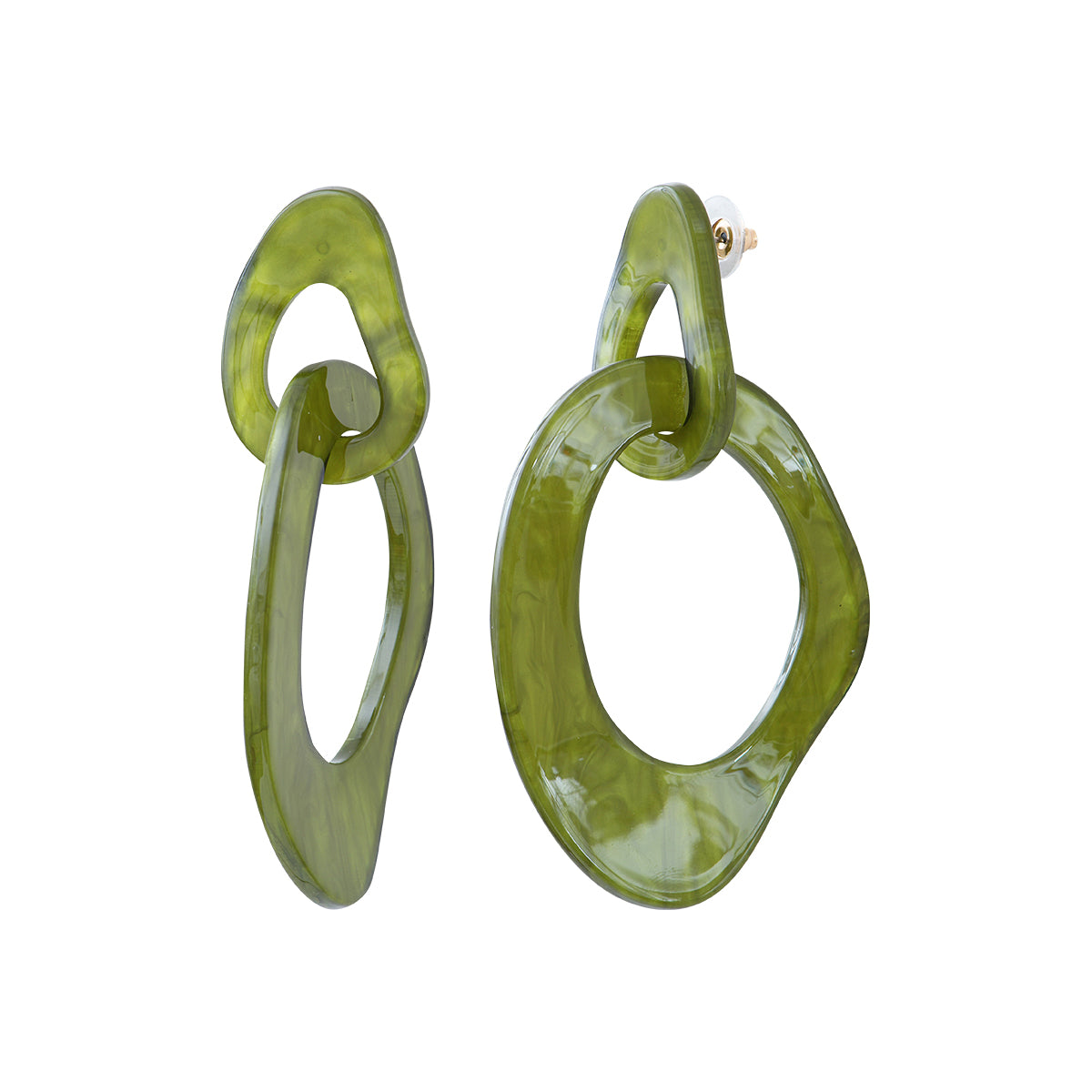 Apportez une touche d’originalité à votre look avec ces boucles d’oreilles légères en acétate. Leur design organique aux formes irrégulières et leur teinte vert olive subtile ajoutent du caractère tout en restant faciles à porter au quotidien.